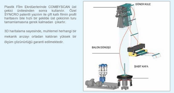 COMBYSCAN, T-Kafa cast hatlarında veya Plastik Film Ekstrüderlerinde bariyer film ölçümü için kullanılmaktadır.
